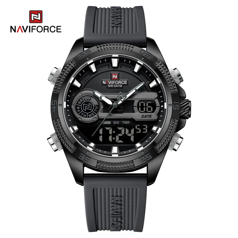 ساعة NAVIFORCE 9223 الإلكترونية للرجال، كوارتز، مقاومة للماء، متعددة الوظائف، بسوار من السيليكون، ساعة رياضية إلكترونية للرجال