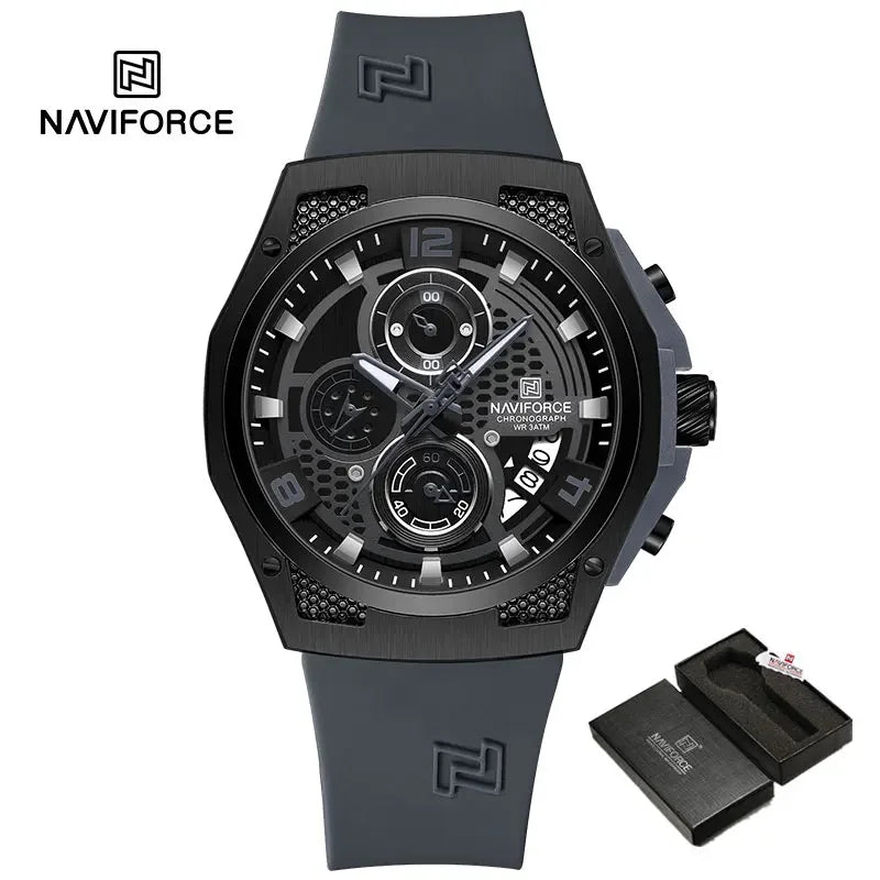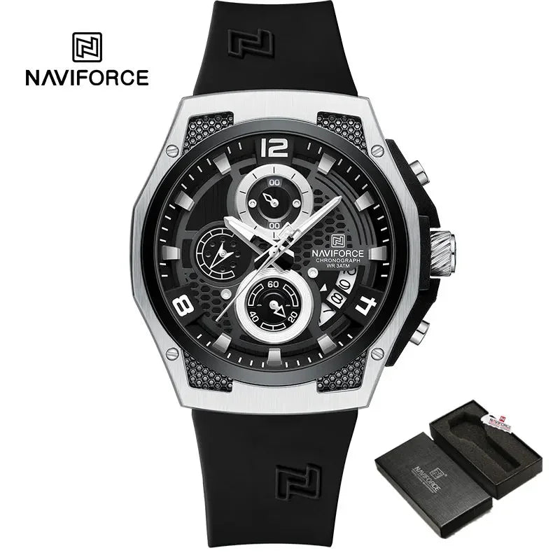 ساعة NAVIFORCE NF8051T كوارتز للرجال من أفضل العلامات التجارية الفاخرة مقاومة للماء حتى عمق 30 مترًا وعرض التاريخ وسوار من السيليكون